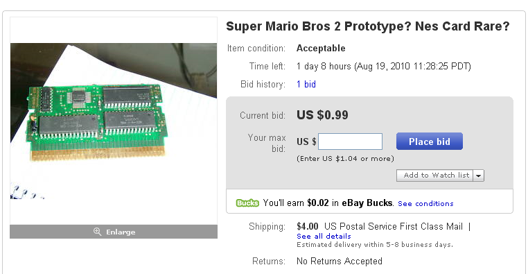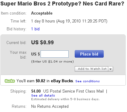 this "Mario 2 Test Card" had four different bidders