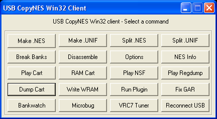 open USB CopyNES.exe. Make sure the NES is powered on.