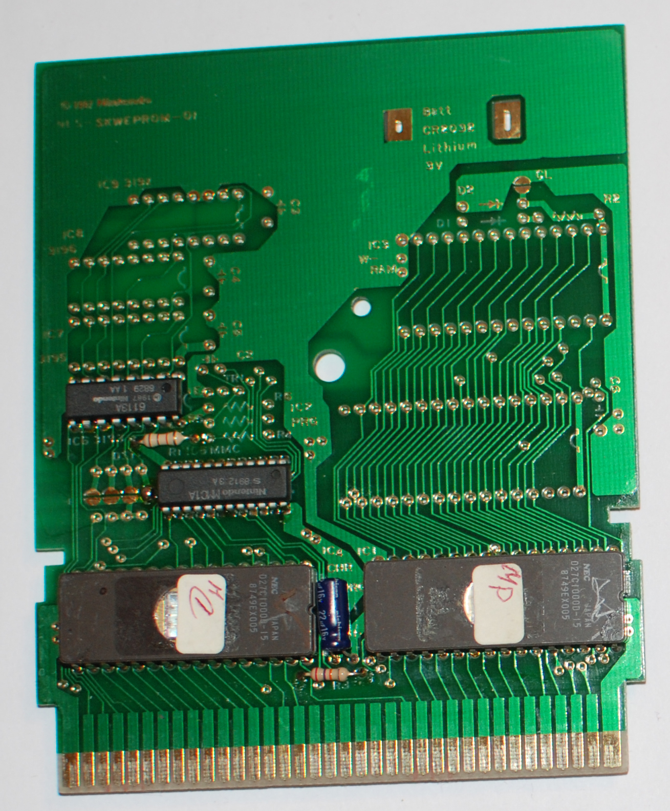 EPROM chips on the official Nintendo NES-SKWEPROM-01 development board inside are devoid of any Capcom company stickers.