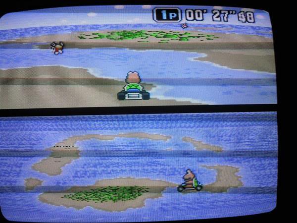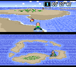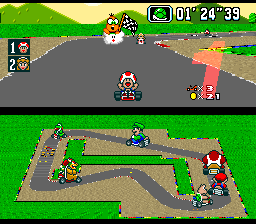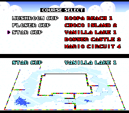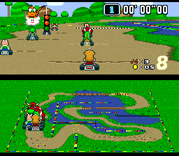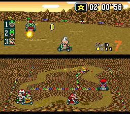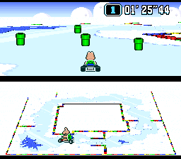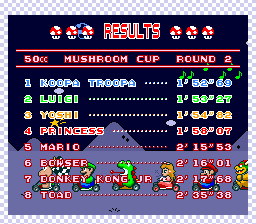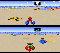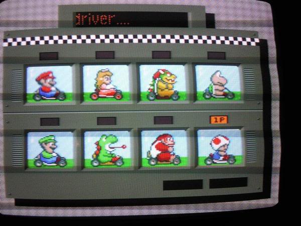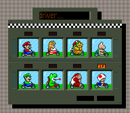 On the Select a Driver screen, Mario and Luigi have different rear-ends on their karts, and Bowser’s sprite appears to be changed as well.  On both the title screen and player select screen, Bowser’s lower jaw is sticking out a little bit more.