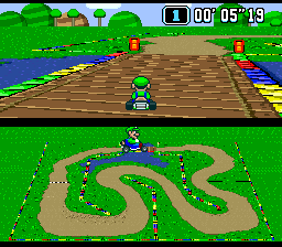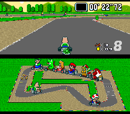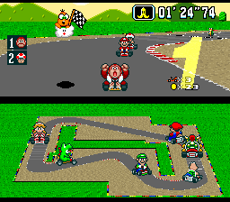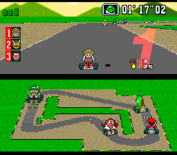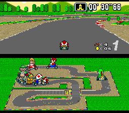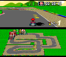 After the single-player-only F-Zero launched alongside the Super Family Computer in 1990, Nintendo began tooling around with the idea of designing a racing game where two human-controlled drivers could compete on a course at the same time. According to an April 2008 interview director Hideki Konno gave with Nintendo president Satoru Iwata, the first working prototype of what would eventually evolve into Super Mario Kart had not the famous Italian plumber behind the wheel but a nonspecific man sporting overalls. It wasn’t until three or four months into development when this sprite grew a mustache, and Mario and company officially joined the race. One of the first in-game items to follow was an oil can that could be thrown to spin out other karts. The developers, of course, later ditched this messy mechanic of polluting the Mushroom Kingdom with oil spills (four words: Koopa Beach, Exxon Valdez) in favor of having the player toss more eco-friendly, biodegradable banana peels instead (link).