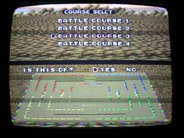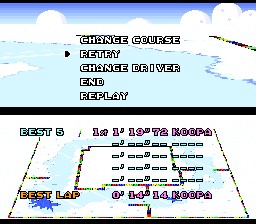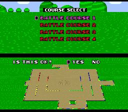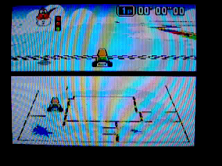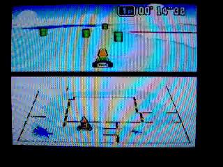 The left-side text on the Time Trial menus is white but flashes red. In the retail, the text is red but flashes white. Also, the “Course Select” text at the top of the screen is misspelled “Course Selct” on the Time Trial and Battle Mode menus.