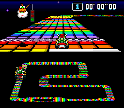 Rainbow Road is narrower in the prototype, causing computer-controlled drivers to constantly fall off.