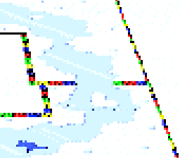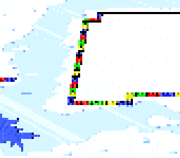 Vanilla Lake 1 contains two additional straight multicolored track walls right before the small blue lake.