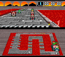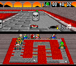 The Thwomps on Bowser’s Castle and Rainbow Road start to go up and down immediately, unlike the retail game where they become active only after completing the first lap.