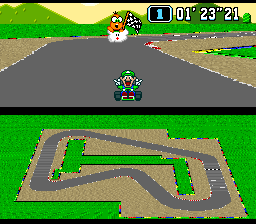 In Time Trial mode, the music for when crossing the finish line doesn’t play. (It does in Grand Prix mode, however.)